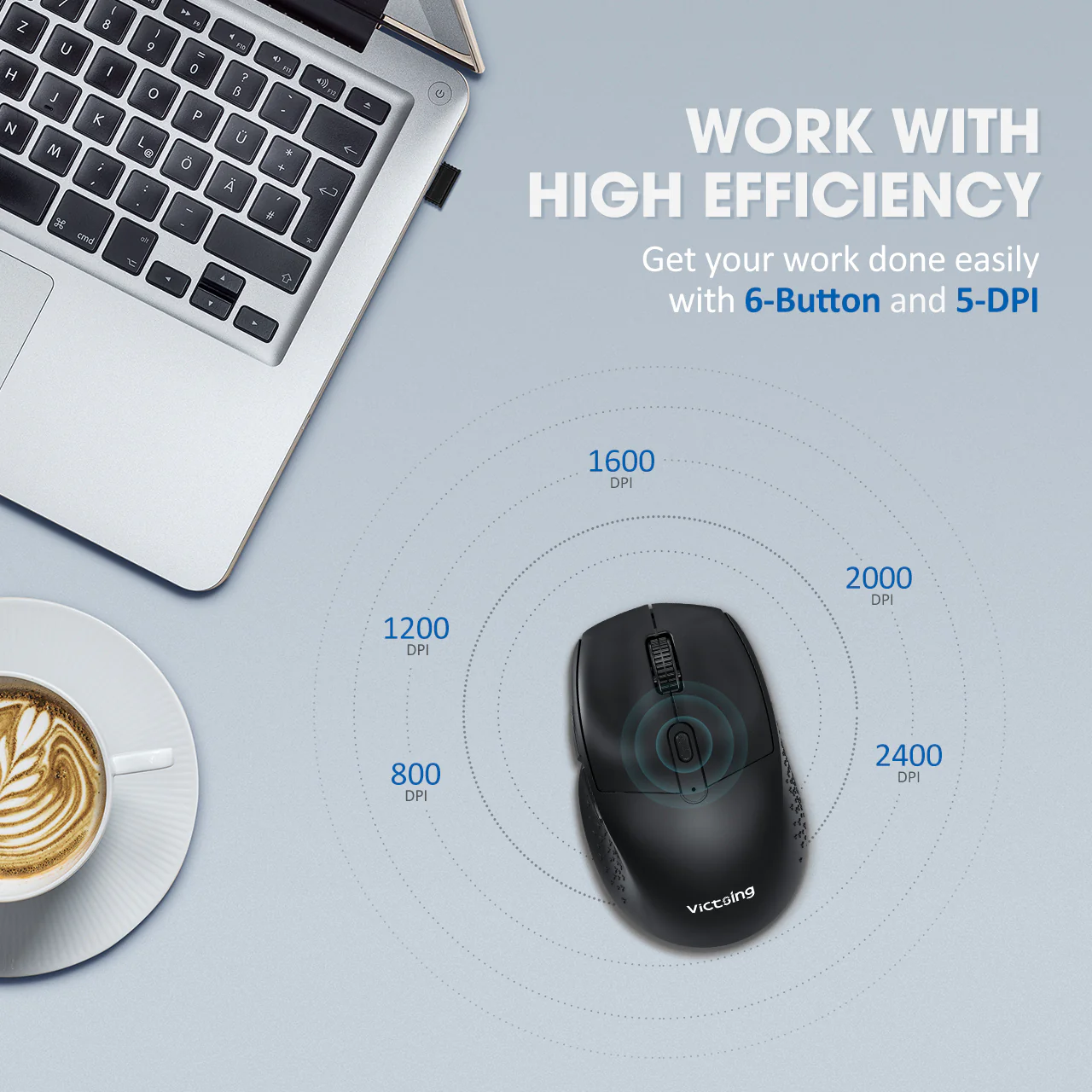 💕 5 niveaux DPI réglables : Commutateur simple 5 niveaux DPI (800-1200-1600-2000-2400) pour ajuster la sensibilité selon vos besoins. 6 boutons sont livrés avec multifonction pour améliorer la productivité et l’efficacité sur le lieu de travail.
